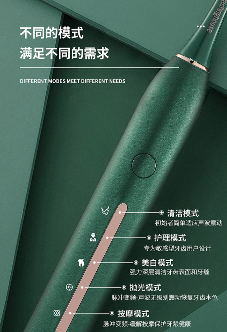 超高颜值,助力西屋电动牙刷晋升网红 相比于传统的电动牙刷,西屋这款新品电动牙刷在外观造型也是别具一格。尤其是这款电动牙刷提供的印象粉和暮光绿两种外观颜色,让人第一眼看到的时候有种惊艳的感觉。其中印象粉,以颜粉新宠唤起少女之心,为爱美的你量身打造;暮光绿,更显热情优雅,星河滚烫之间,你就是人间理想。它们联手为略显乏味的换洗室增添艺术的气息,让你生活更添靓丽的色彩。 尊重个体,个性化刷牙模式必有一款适合你 刷牙是一个非常因人而异的行为,不同口腔状态、对于牙齿的不同需求,都会体现在每天的刷牙上。西屋电动牙刷为消费者提供了五种可随时切换的模式,方便消费者来选择。具体来说主要有: