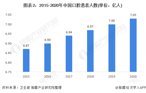 我国口腔患者人数超7亿人 口腔问题一直是困扰人们的重要健康问题,根据丁香医生发布的《2021国民健康洞察报告》显示,2020年困扰我国国民健康的TOP10问题中,口腔问题位列第五位,且较去年上升1位,我国的国民口腔健康已经成为了不可忽视的问题。